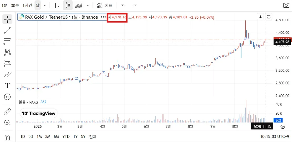 정답은 코인니스 마켓 내 PAXG USD 시세 기준으로 판단됩니다.