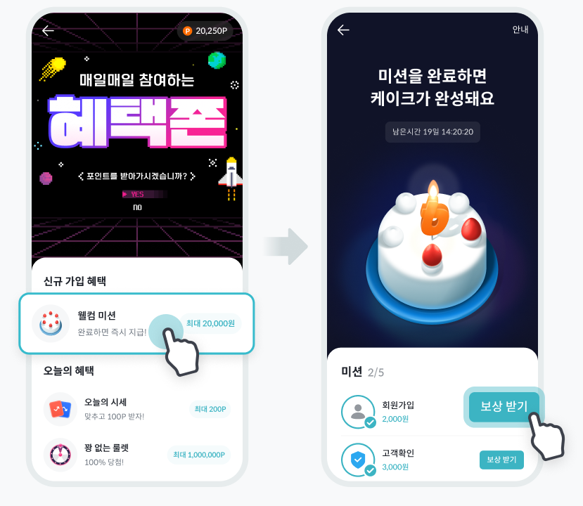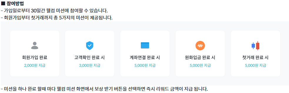 - 생애최초 가입자는 약30일간 웰컴미션에 참여할수 있습니다.
