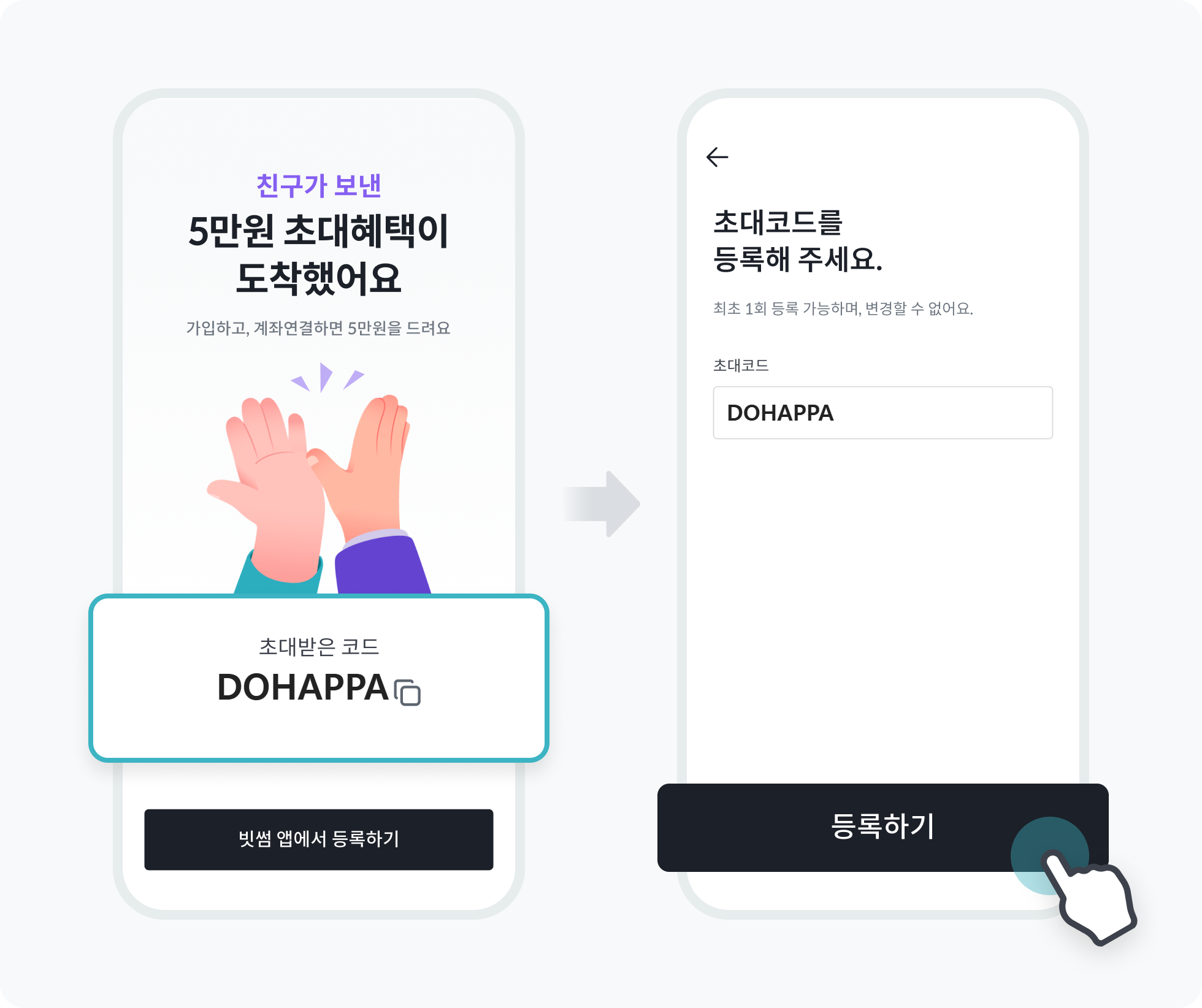 - 초대코드 DOHAPPA는 최초 1회만 입력 가능